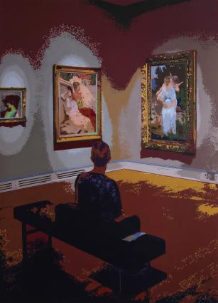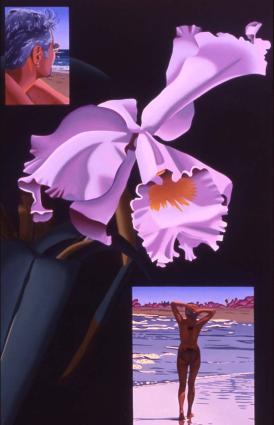 All my paintings are painted in oil. The ground material is primarily linen. A few works are on canvas. Whether I use linen or canvas, the texture is always of a fine grade. The very best materials are always used. I paint opaquely with soft haired round and fan brushes. My paintings are neither air brushed nor stenciled. However, the paint surface is relatively smooth and meticulously crafted.